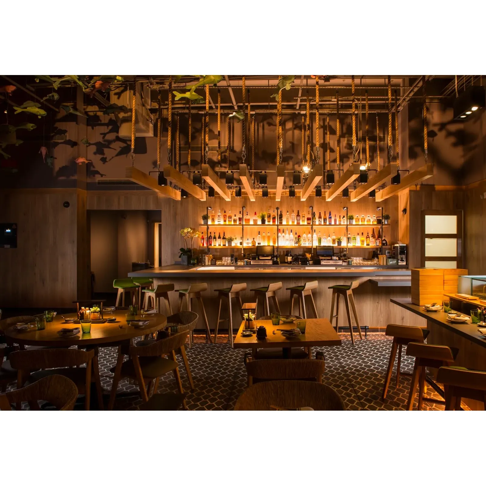 The ambience at Sushi Garage is multifaceted, with indoor and outdoor seating options that cater to different dining experiences, whether it's a night out with friends or a romantic date. The chic decor pays homage to the location's history as a garage, providing a unique and intriguing backdrop.
