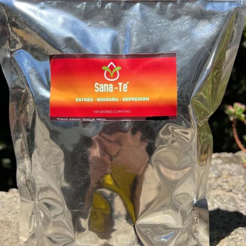 Discover our Stress, Migraine and Depression Infusion, a natural elixir that transforms your emotional and mental well-being! This unique blend of ingredients grown in Mexican lands is designed to provide you with effective relief and a deep relaxation experience. Made with a mixture of sapote leaf, brazilwood, mistletoe, fennel, lemon balm, linden, manita, orange blossom and damiana de Guerrero, this infusion is full of qualities that nourish your body and mind, providing you with comprehensive well-being.
