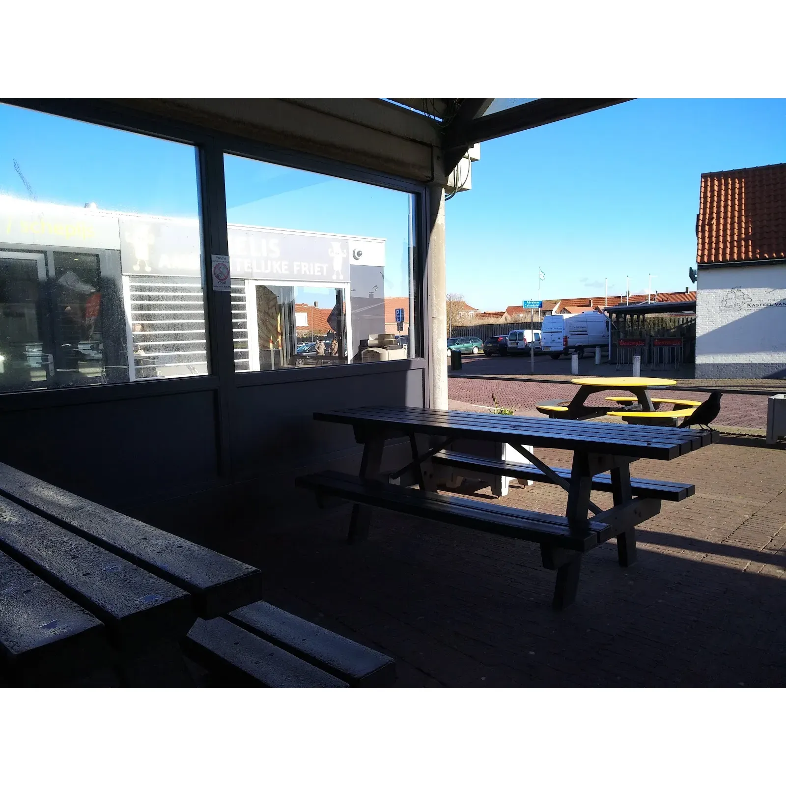 Seating at Melis Ambachtelijke Friet allows diners to choose from enjoying their meal under a roofed seating area outfitted with tables and benches, or, for a more scenic dining experience, patrons can ascend the nearby stairs to relish their meal with a captivating ocean vista. Although the seating is described as more functional than decorative, it affords a comfortable spot to savor the delicious fare. Overall, Melis Ambachtelijke Friet is celebrated for its delicious food, fast service, and comfortable setting, making it an admirable destination for anyone in search of a superior snack by the sea. Description by ChatGPT.